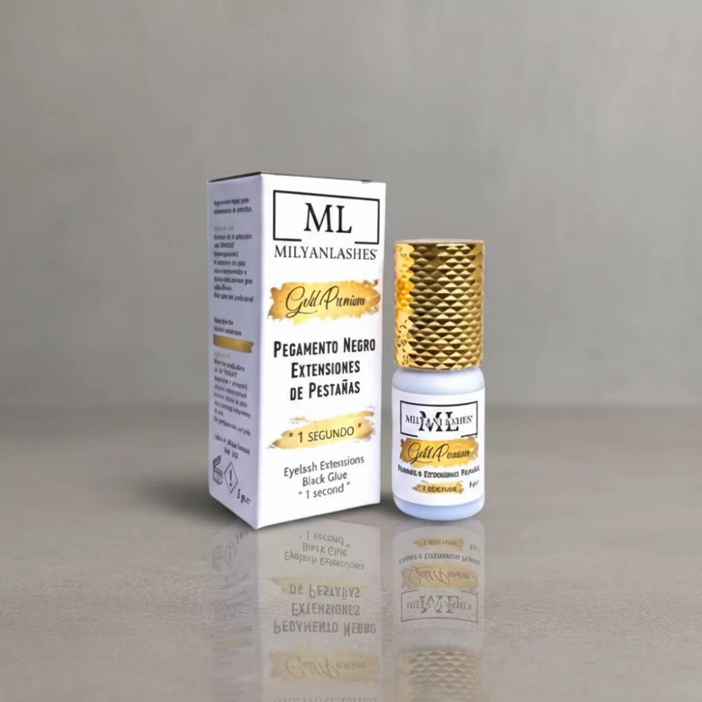 Glue for Eyelash Extensions Milyanlashes Gold Premium,with only 1 second of drying time on contact, can reach 5-6 weeks duration* in the eyelashes of our clients, a perfect balance of viscosity and consistency, the finish is 100% lump-free. 5gr.
