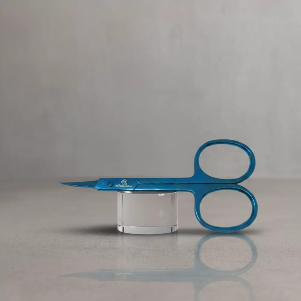 Precision scissors for general use, stainless steel with mirror blue finish.
