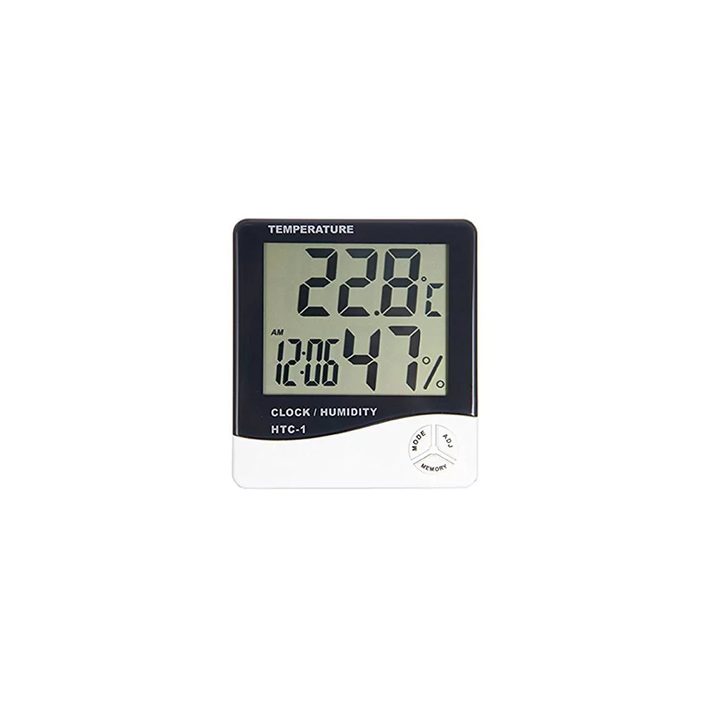 Digital Thermometer-Hygrometer Clock, simultaneously tells you the time, measures the temperature in degrees Celsius and the percentage of humidity, also has an alarm function.