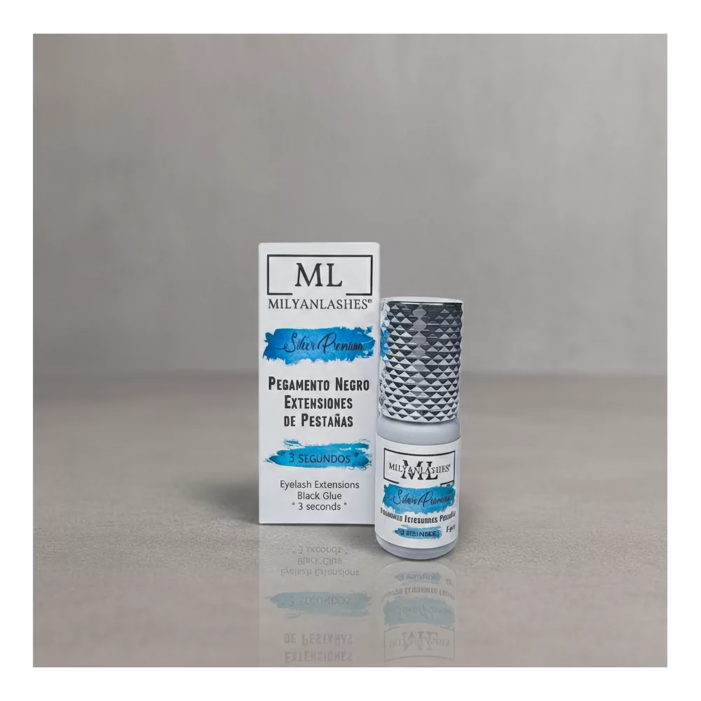 Adhesivo para extensiones de pestañas Milyanlashes Silver Premium, con 3 segundos de tiempo de secado al contacto, Hipoalergénico, puede llegar a alcanzar las 5-6 semanas de duración* 5gr.